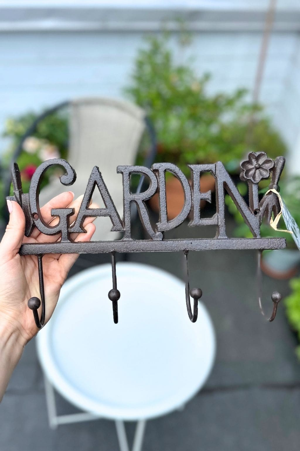 Ich suchte nach einer Lösung, um meine Gartenkleidung ordentlich im Abstellraum aufzubewahren. Und hier ist sie – ein robuster Garderobenhaken im Antik-Look mit vier Haken. Ich kann nicht nur Gartengeräte, sondern auch meine „Garden Mood“-Kleidung aufhängen. Er lässt sich leicht an der Wand befestigen – es werden nur zwei Schrauben benötigt.