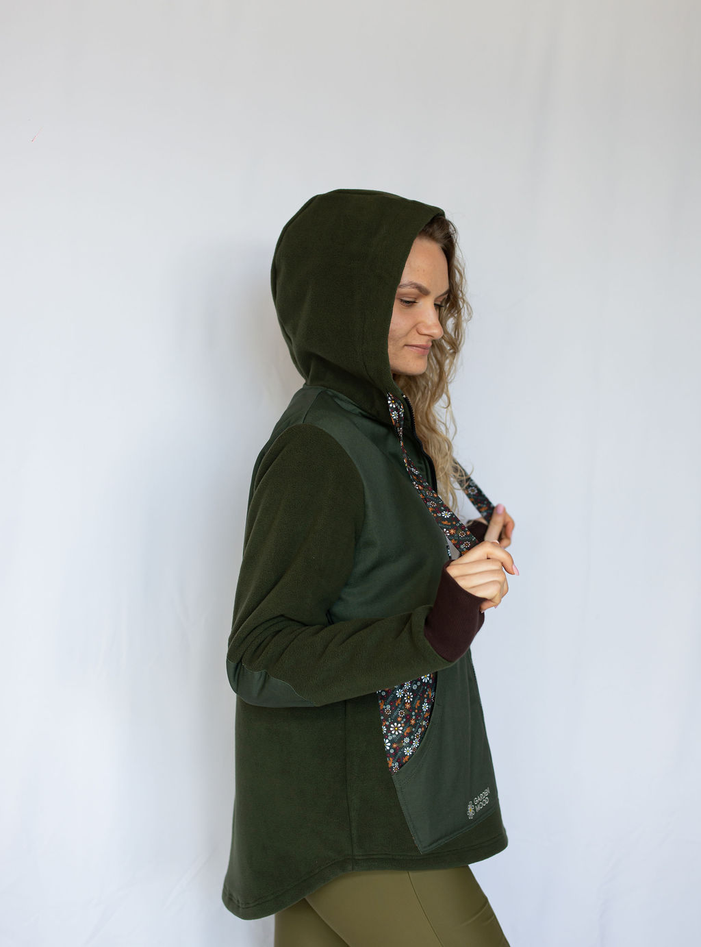 • Kühler Abend im Garten? Dickes, warmes Fleece-Material wärmt den Körper an kühlen Sommerabenden, im frühen Frühling und späten Herbst. Lange Ärmelbündchen schützen die Handflächen vor Kälte und eine große Kapuze schützt Ihre Frisur (auch mit Dutt!).