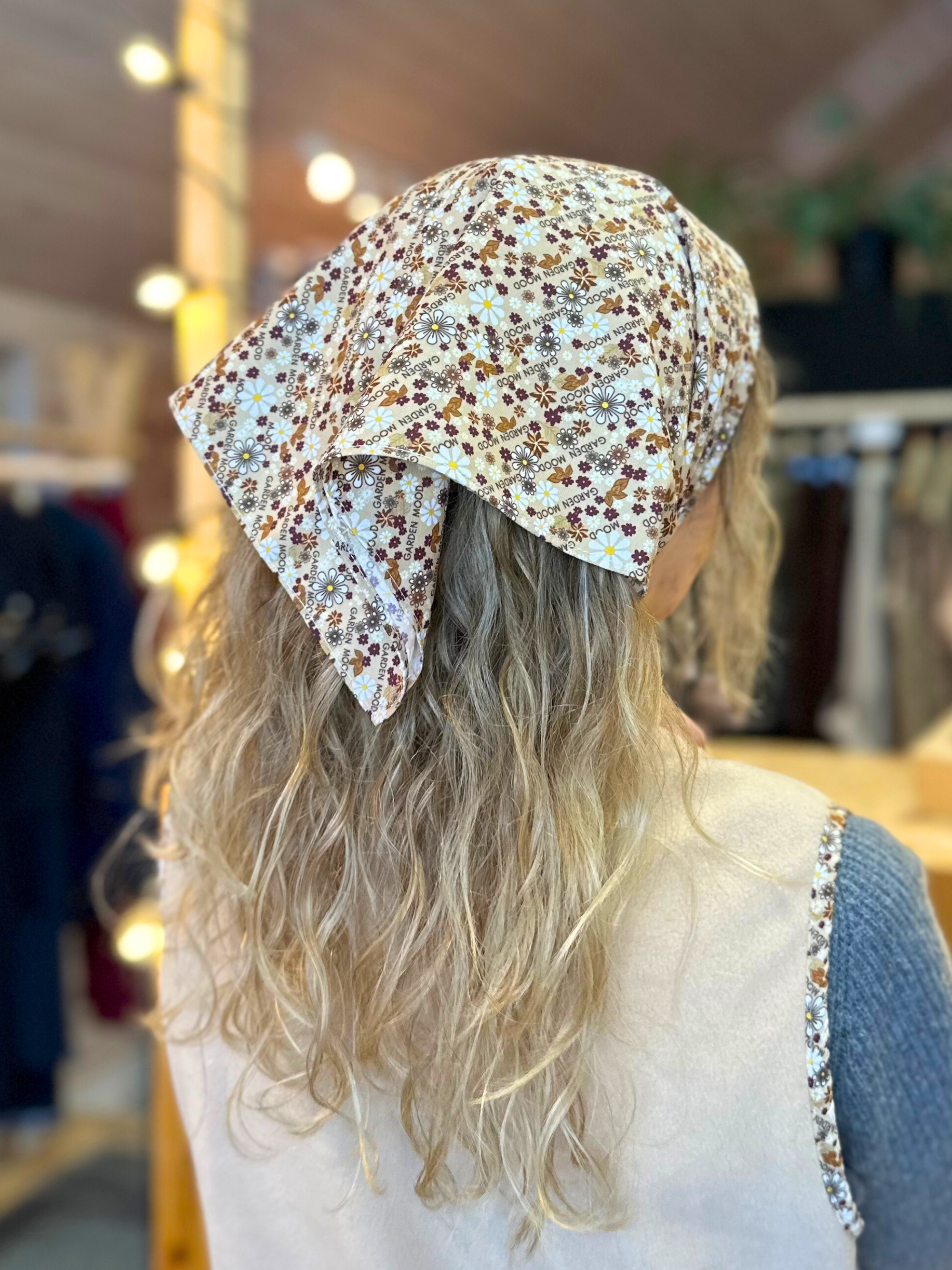 - Dieses geblümte Halstuch ist für sonnige Tage im Garten gedacht.