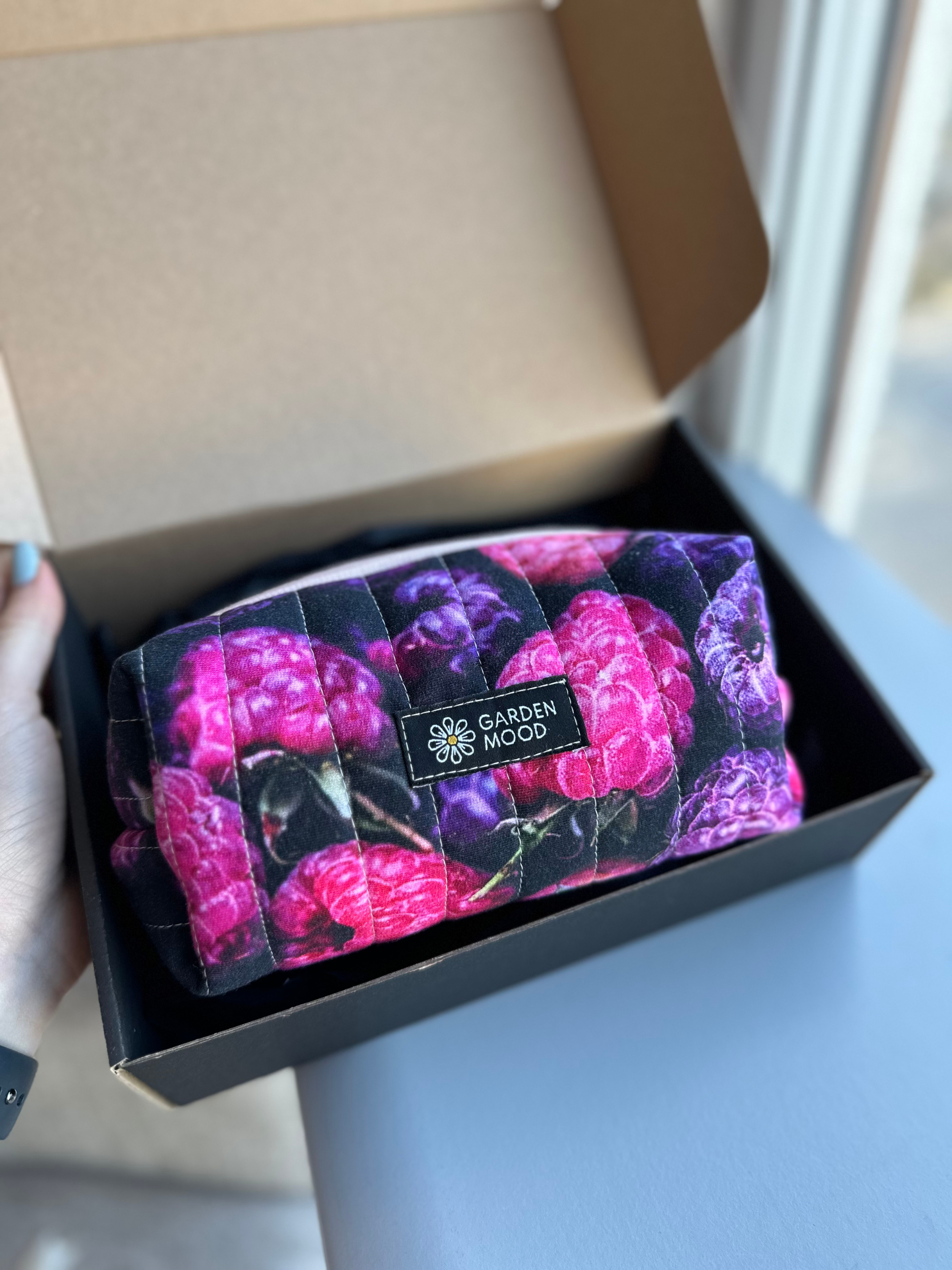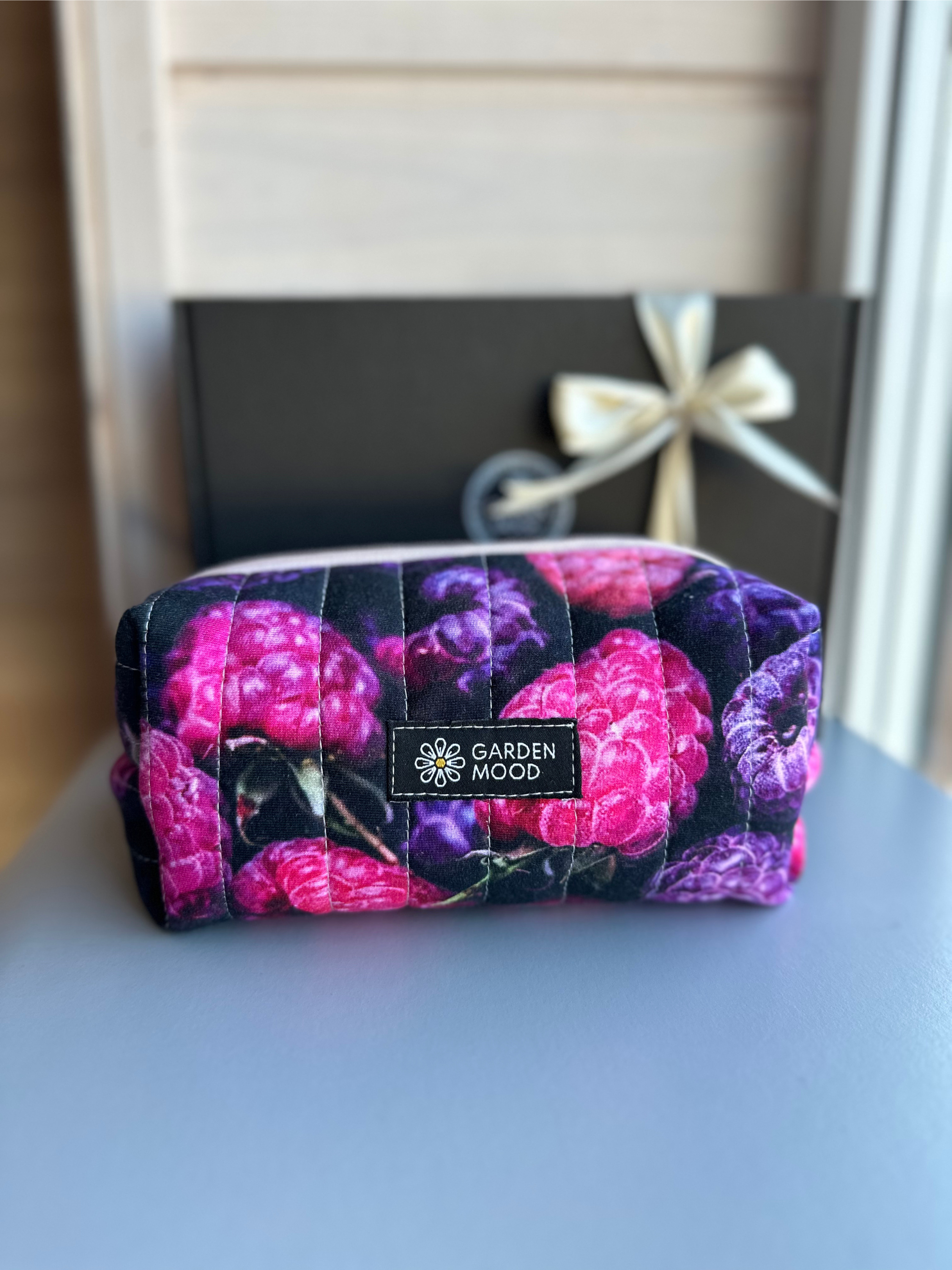 Handgefertigte Kosmetiktasche mit Himbeermuster, die an die leckersten Sommer erinnert. Die geräumige Kosmetiktasche mit Reißverschluss und Beerenmuster erinnert an Urlaub und weckt gute Gefühle. Ideal zur Aufbewahrung von Kosmetika oder anderen Kleinigkeiten. Das beste Geschenk für Himbeerliebhaber, denn sie ist verpackt und bereit zum Verschenken!