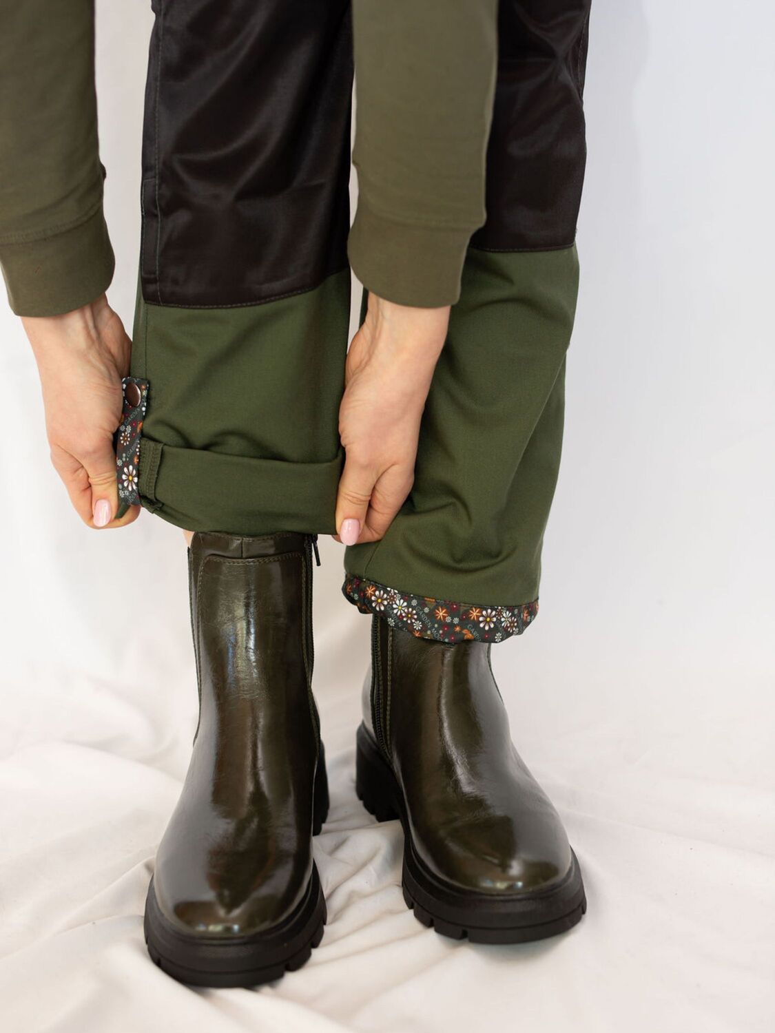 Knie: wasserabweisender Stoff (50% Polyester, 50% Baumwolle)