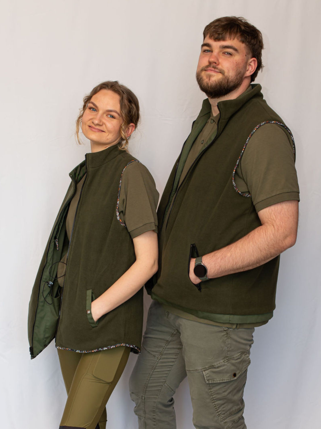 Dieses Set wurde von Kundinnen inspiriert, die „Garden Mood“-Kleidung kauften und immer wieder von ihren Männern hörten: „Wann gibt es etwas für Männer? Ich will auch was!“. So kann dieses Set ein Geschenk für dich und deinen Mann werden. Oder umgekehrt kann der Mann es für sich selbst kaufen und die Frau überraschen. Möge die ganze Familie bequem und stilvoll im Garten arbeiten, und wenn man in die Stadt fahren muss, reicht es, wenn beide die Westen auf die andere Seite drehen, und fertig!