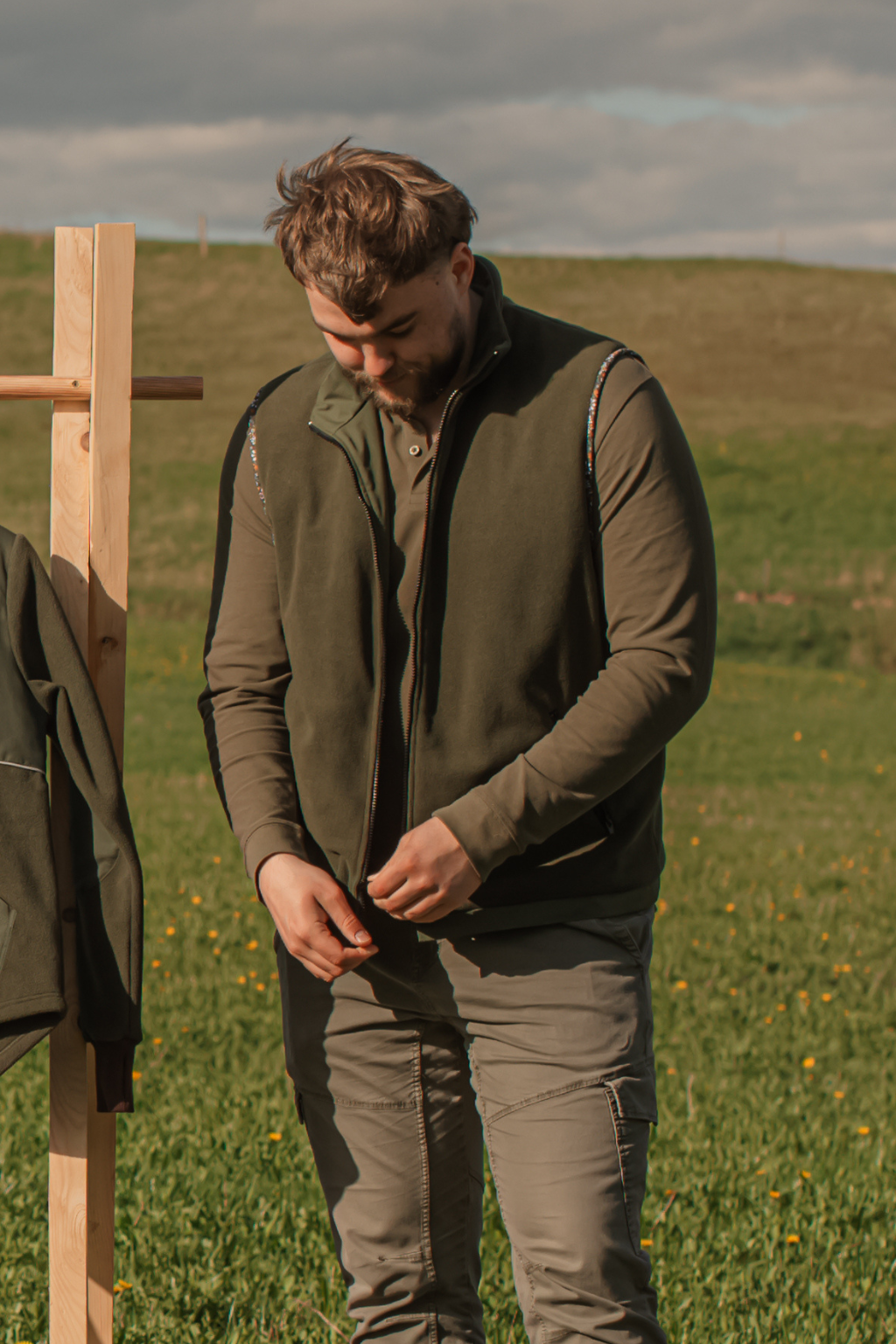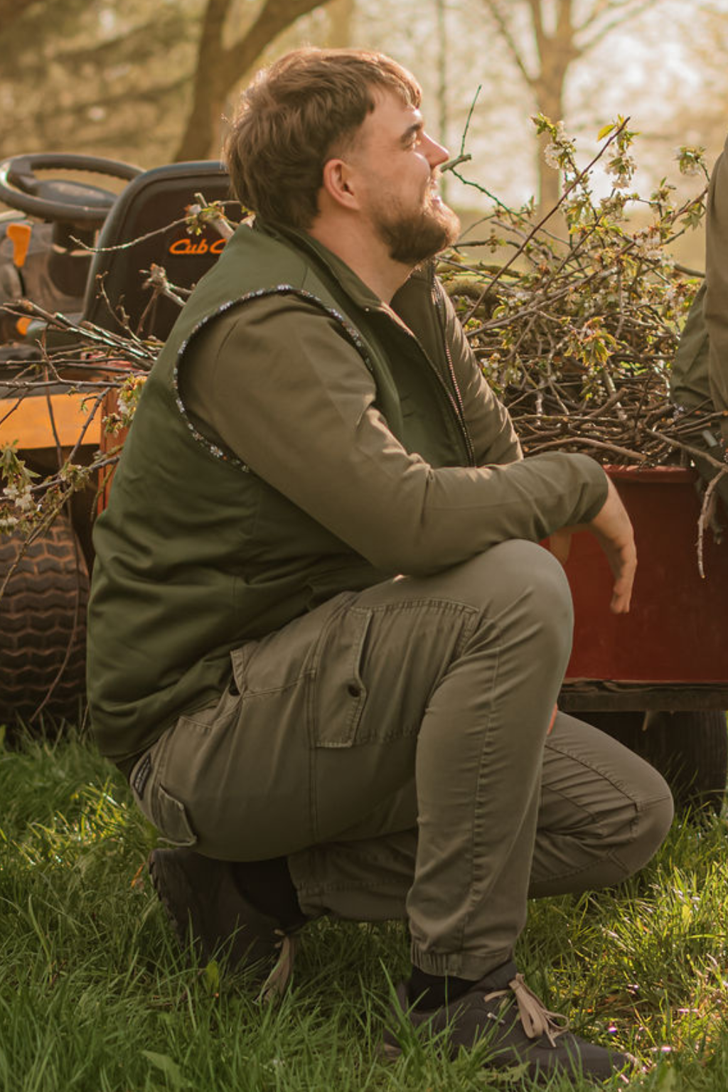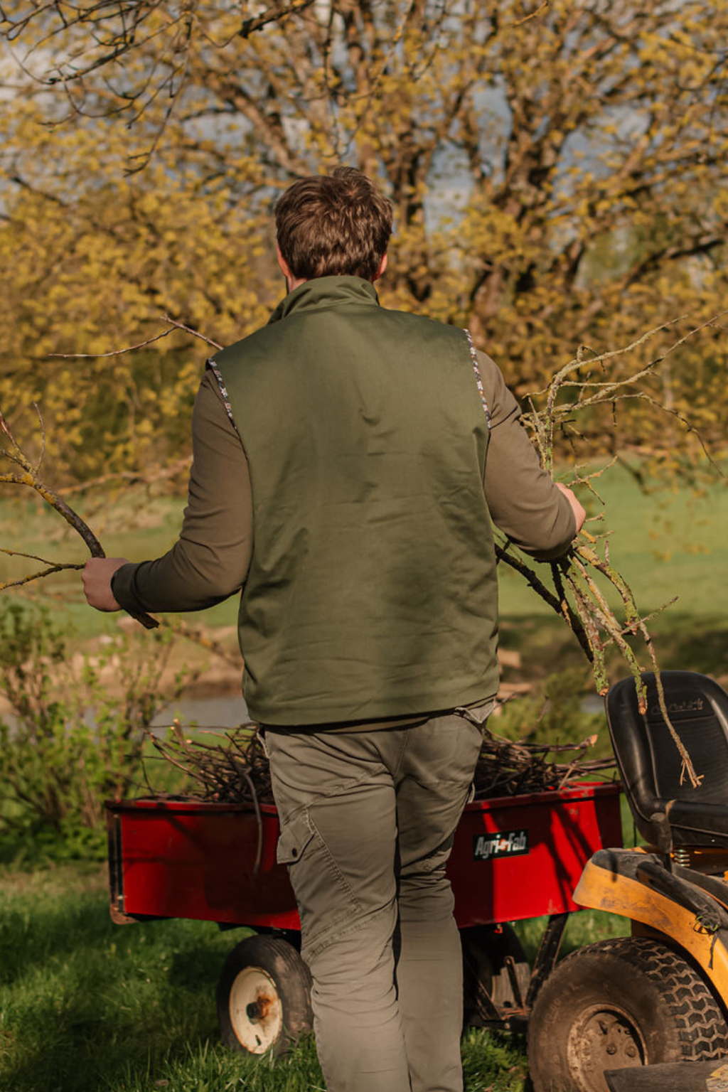 Entwickelt, um jede Arbeit im Garten oder in der Werkstatt reibungslos und angenehm zu gestalten. Diese Herrenweste ist eine vielseitige, funktionelle und bequeme Wende-Weste. Eine Seite ist warm und stadttauglich, die andere für die Arbeit mit großen Taschen. Einige florale Details aus dem einzigartigen „Garden Mood“-Stoff verleihen selbst praktischer Kleidung Exklusivität.