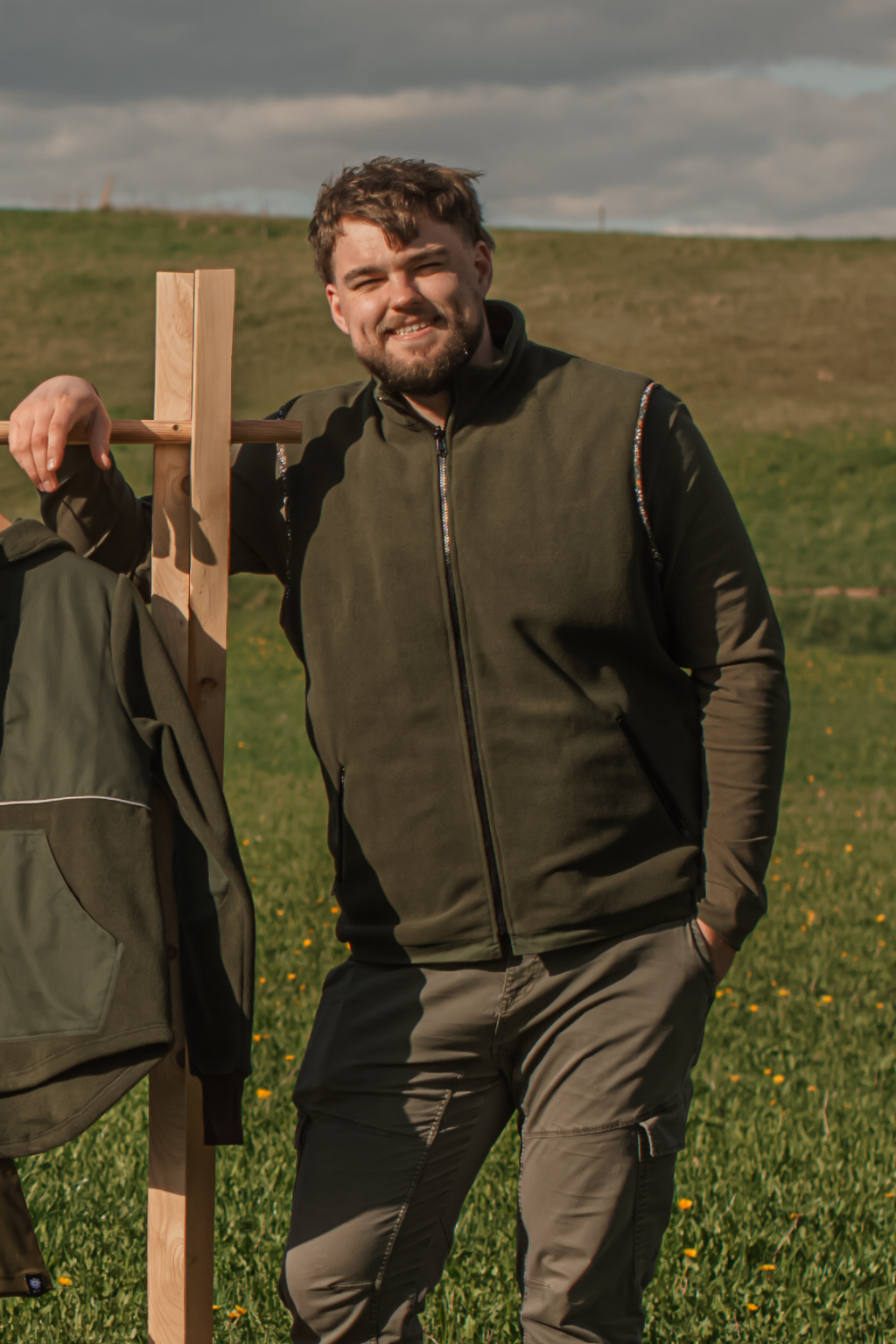 Robuster, für die Arbeit geeigneter Stoff – abriebfest, aber bequem zu tragen.